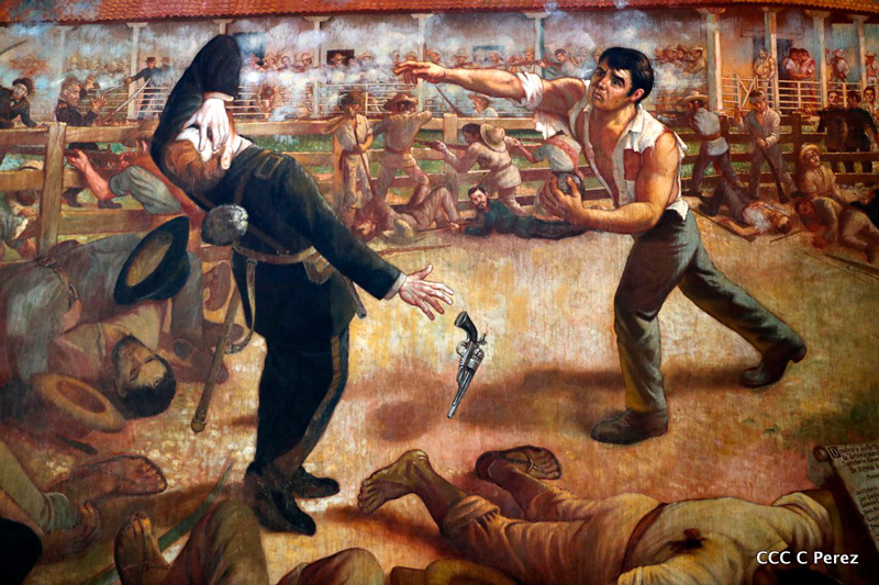 “Goliat contra David, esa es la historia, Goliat contra David, tratando de humillar a este pueblo, porque es un pueblo pequeño, con poca población, con una economía bien frágil. Ya se sentía el yanqui dueño de Nicaragua y no le bastó nombrarse jefe del Ejército y fusilar a cuanto nicaragüense quiso, sino que también se nombró Presidente de la República de Nicaragua”, historió el comandante Ortega.