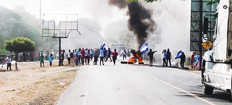Un elemento de la campaña de la oposición que tuvo éxito al principio fue el levantamiento de barricadas (“tranques”) en las calles de la ciudad y en la media docena de carreteras principales del país. En un momento dado, Nicaragua quedó de hecho paralizada y el gobierno tuvo que exigir el desmantelamiento de los tranques para reanudar el “diálogo nacional” (auspiciado por obispos católicos y en el que estaban involucrados tanto la oposición como los partidarios del gobierno) con el fin de resolver la crisis.