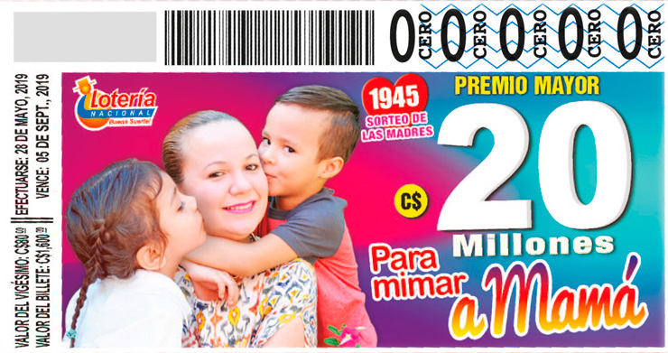 En homenaje a las madres nicaragüenses y en reconocimiento a su labor y abnegación, la Lotería Nacional realizó un sorteo especial este 28 de mayo, cuyo premio mayor fue de 20 millones de córdobas. Fue el sorteo 1945. El billete entero tuvo un costo de 1,600 córdobas y el vigésimo 80 córdobas. Además, la institución incluyó otra gran cantidad