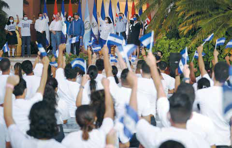 Cobardes, asesinos, que quieren repetir la Historia, y se sienten poderosos porque siempre tienen el espíritu de servidumbre frente al yanqui, y se sienten orgullosos cuando van allá y se reúnen con el yanqui y le piden que le apliquen a Nicaragua Sanciones, como llaman, que no son más que agresiones, y se toman la foto y se sienten orgullosos. Y viene el yanqui que se ha convertido, como lo ha sido siempre, en una amenaza para la Humanidad entera, y les dice que sí, que busquen cómo unirse, para derrocar en las Elecciones de Noviembre de 2021, derrocar al Gobierno Sandinista.