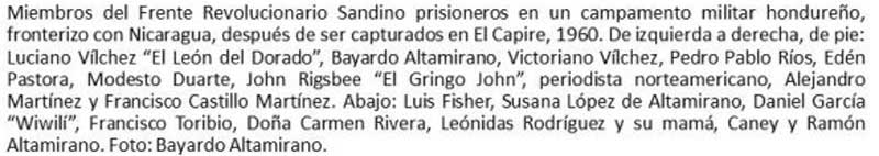 El resto de combatientes cruzaron la frontera hacia Honduras, donde fueron apresados en Catacamas, Departamento de Olancho, hace 60 años. Los prisioneros fueron saliendo en libertad por gestiones de sus familiares y de colaboradores hondureños.