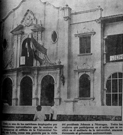 El ocho de julio de 1968, el presidente norteamericano Lyndon B. Johnson (1963-1969) arribó a Nicaragua como parte de una visita por la región centroamericana. Mientras en la pista del aeropuerto, entonces llamado Las Mercedes, actual Augusto C. Sandino, el dictador general Anastasio Somoza Debayle montó un recibimiento con estudiantes de primaria que agitaban banderitas de Estados Unidos y Nicaragua; en el centro de Managua se escenificaba una protesta de repudio a su presencia.