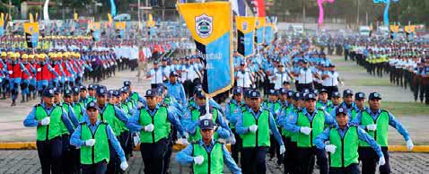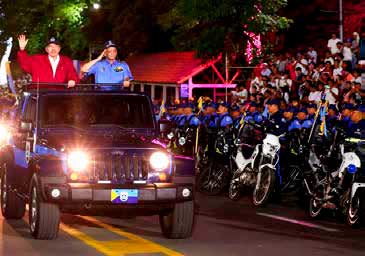 El presidente Ortega y la vicepresidenta Rosario Murillo encabezaron el acto, así como el Desfile “La Paz Somos Todos”, también en saludo al 45 aniversario de fundación del Ministerio del Interior, el 15 de octubre en la Avenida de Bolívar a Chávez, en Managua.