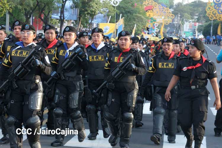 Señaló que, gracias a esa unidad y fuerza, el pueblo nicaragüense vive en paz, seguridad, estabilidad, progreso, bienestar y prosperidad. “Como policías y militantes sandinistas, con la firmeza de este Desfile Policial, ratificamos nuestra lealtad y obediencia a nuestra Jefatura Suprema, los Copresidentes, el Comandante Daniel Ortega Saavedra y la Compañera Rosario Murillo Zambrana”, expresó.