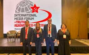 Nicaragua estuvo presente en el “Foro Internacional de Medios y la Conferencia Internacional “La Verdad contra el Neofascismo” -celebrado este 6 de noviembre- en Moscú, auspiciado por Partido Comunista de Rusia. La delegación nicaragüense estuvo encabezada por Maurice Ortega Murillo, del Consejo de Comunicación y Ciudadanía, e integrada por Annen Castillo, del canal 13; Félix Fernández, de la plataforma digital Juventud Presidente; y Alba Azucena Torres, embajadora en la Federación de Rusia. La delegación tuvo la oportunidad de visitar las instalaciones de la agencia de prensa Rusia Today.